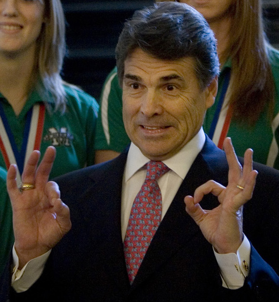7/15/2009 – Jay Janner/AMERICAN-STATESMAN – Gov. Rick Perry poses for a picture with members of the Monahans High School 3A state champion girls golf team at the Capitol on Wednesday July 15, 2009. They are, left to right, coach Becky Hix, and players Jordan Jernigan, 18, Allison Parks, 18, Shelbye (CQ) Hill, 17, and Victoria Moore, 18. Perry hosted about 500 academic and sports state champions from the Spring semester during Wednesday’s State Champion Day.