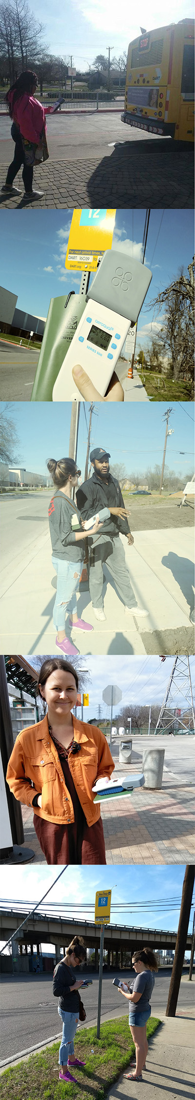 Less than two weeks after their arrival from New Zealand, Misti O’Quinn, Evelyn Mayo, Mandy Poland, Shannon Gribble and Cresanda Allen were using the devices to measure PM levels at DART bus stops and DART buses around Dallas this last weekend.